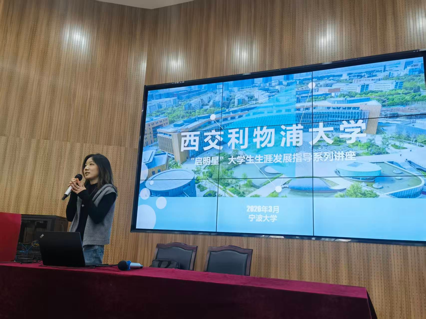 3月26日,国产成人电影 举办“启明星”大学生生涯发展指导系列讲座——宁波诺丁汉大学、西交利物浦大学、温州肯恩大学硕士项目宣讲会。本次活动由宁波大学就业指导中心主办,宁波大学“启明星”大学生生涯发展工作室承办,吸引了学院近百名本科生参与。