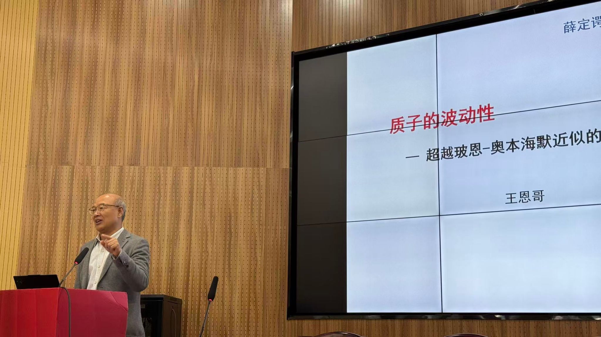 王恩哥院士首先从微观世界的基本图景出发,系统阐述了量子实在同时具有波粒二象性的基本特征。在传统的玻恩-奥本海默近似框架下,凝聚态体系通常将电子视为具有波动性的量子对象,而将原子核视为经典粒子处理。在此基础上,他引入“全量子效应”这一重要物理概念,重点探讨了质量最接近电子的原子核——质子的量子行为,分析其量子化处理可能带来的新物理现象与科学发现。